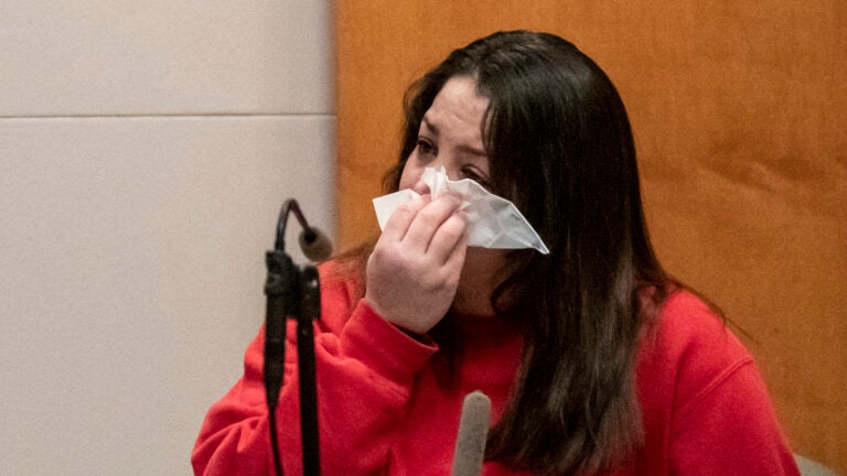 Kayla Montgomery testified that her stepdaughter, Harmony Montgomery, whose body has not been found, died Dec. 7, 2019, in a car the family was living in after getting evicted. It was the third day of Adam Montgomery’s murder trial in Manchester, which he hasn’t been attending.