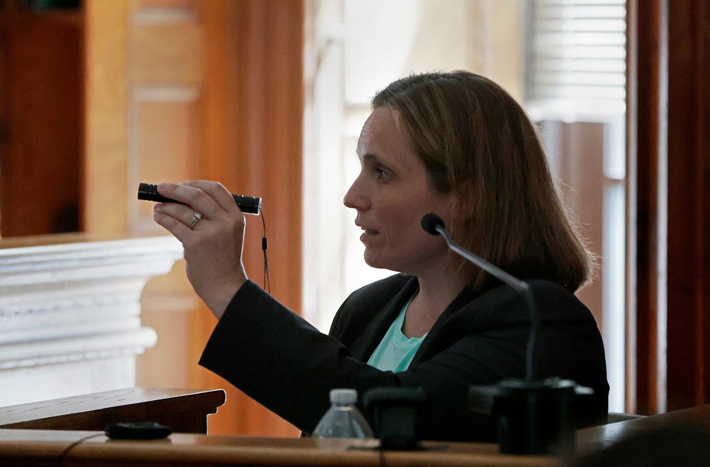 During her time at the Canton police station, Hartnett said she also received other evidence in the case, including a broken drinking glass reportedly recovered from the scene at 34 Fairview Road and several Solo cups “filled with frozen red-brown stains.” She said she packaged the drinking glass and allowed the Solo cups to thaw before collecting samples.
