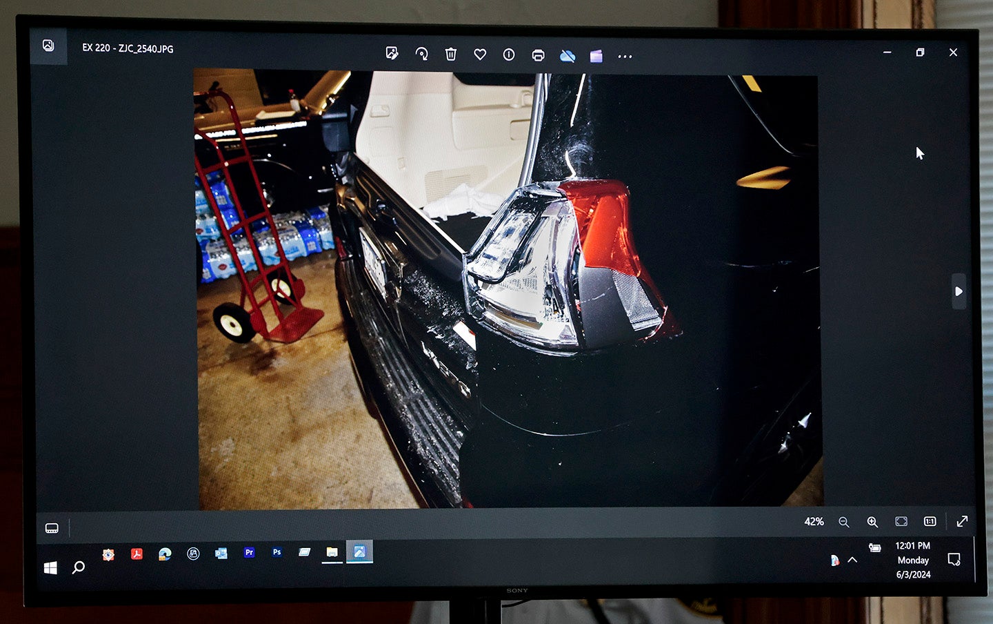As she examined Karen Read’s Lexus SUV at the Canton Police Department on Feb. 2, 2022, forensic scientist Maureen Hartnett said she noted damage on the car’s rear passenger side.