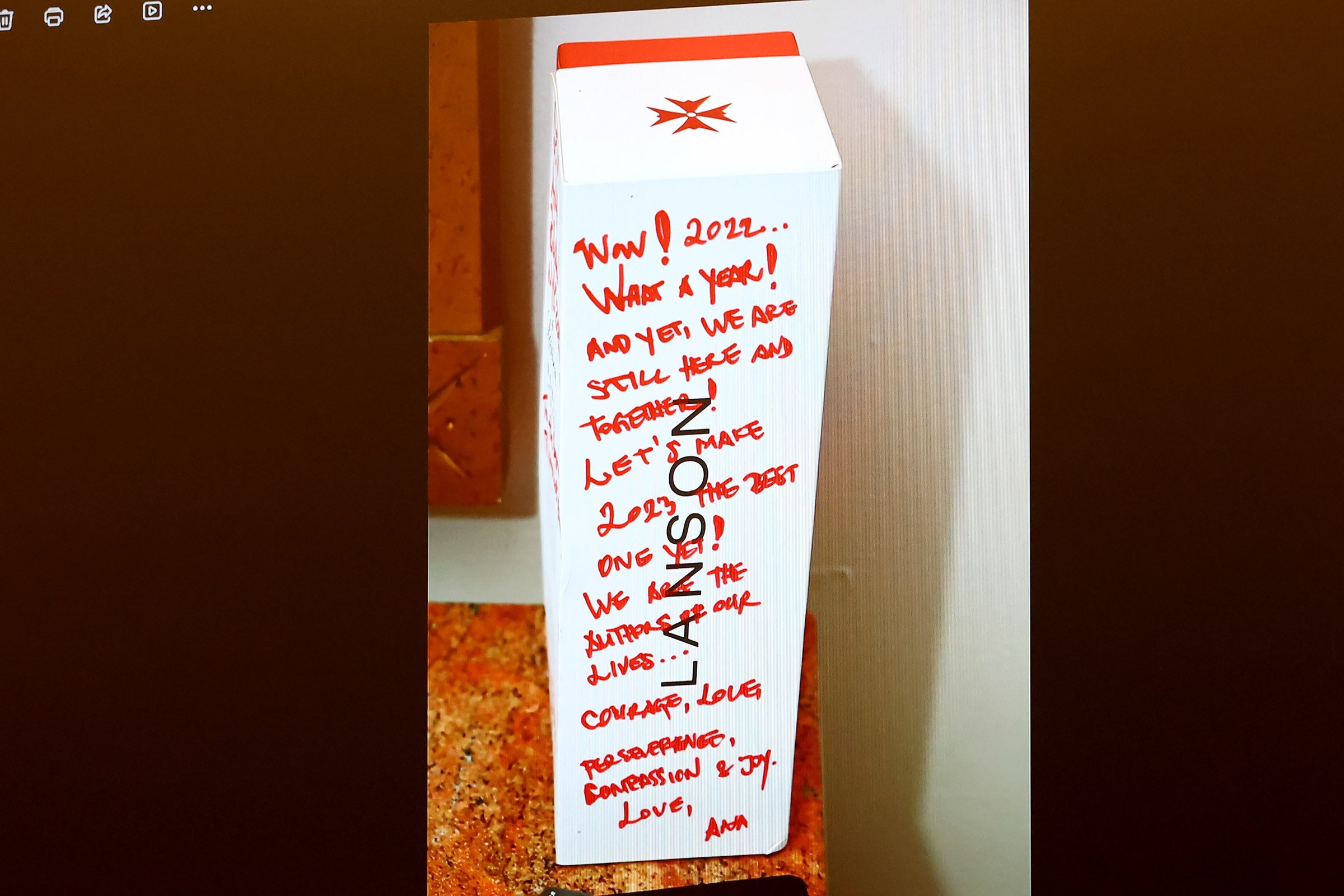 Tipton said the friends signed the outside of a champagne box, with Ana writing, “Let’s make 2023 the best one yet.”