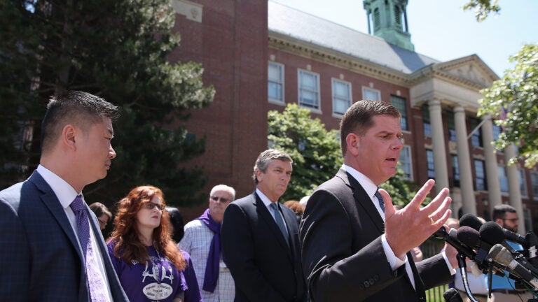 Following the resignations of Teta and Flynn on Tuesday and Wednesday, respectively, a group of Boston Latin faculty members stood in defiance of Chang and Mayor Marty Walsh at a press conference Thursday.