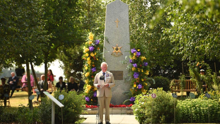 The ceremony was attended by Prime Minister Boris Johnson, Prince Charles and his wife, the Duchess of Cornwall. They all spoke with some of the 40 veterans present, carefully observing social distancing guidelines.