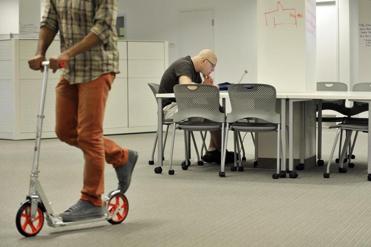 But beyond the metaphysical, the space itself, in true start-up style, is built to expand, collapse, and rearrange as need: Tables, whiteboards, and even team lockers, Denison notes, are all mounted on wheels, ready to create an impromptu office when the next big idea — or willing investor — comes knocking.