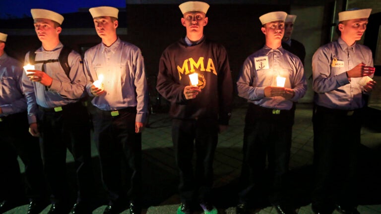 The article highlights the eight New Englanders—Michael Davidson, Danielle Randolph, Michael Holland, and Dylan Meklin from Maine; Jeffrey Mathias, Mariette Wright, Keith Griffin from Massachusetts; and Mitchell Kuflik from Connecticut—who were all among 33 crewmembers killed at sea.