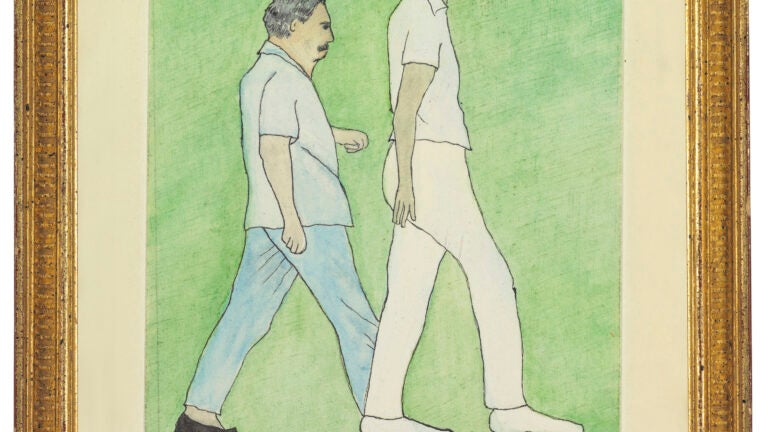 The painting depicts Radziwill walking with a Kennedy family friend.