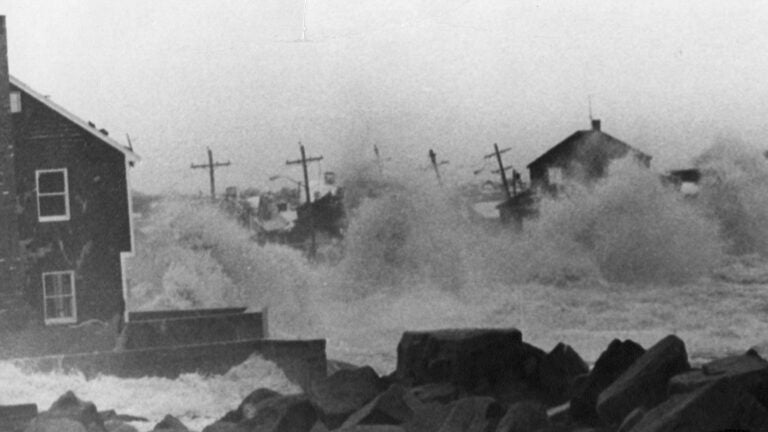 Waves hit homes on Peggotty Beach in Scituate during the 1978 blizzard.Six houses were knocked off their foundations. Dan Sheehan / The Boston Globe