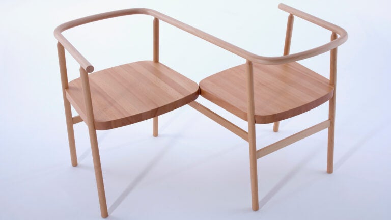 The chair, which PearsonLloyd calls a “love seat,’’ also emphasizes this quality. According to a press release: