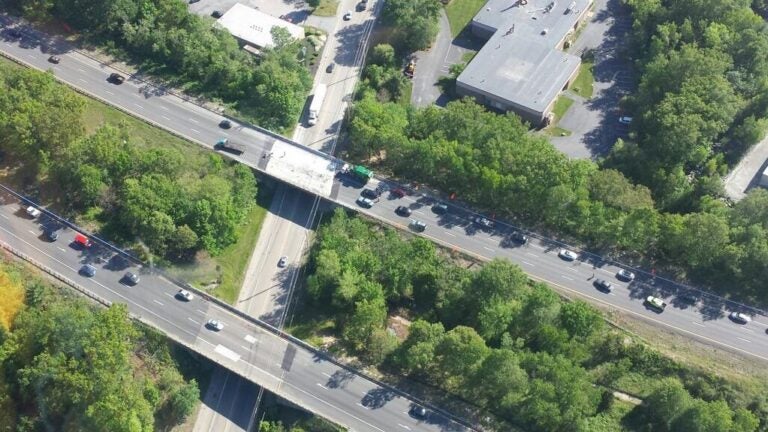 A WCVB helicopter showed the motorcycle laying on its side in the middle of the highway. The station broadcasted the live video on its website.