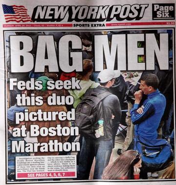 The two plaintiffs in the case, Salaheddin Barhoum and Yassine Zaimi, were pictured on the front page of the Post with the headline “Bag Men: Feds seek duo pictured at Boston Marathon.’’ The pair sued in June 2013, claiming defamation. But the Post said they got the information from FBI sources and, at the time of publication, it was true.