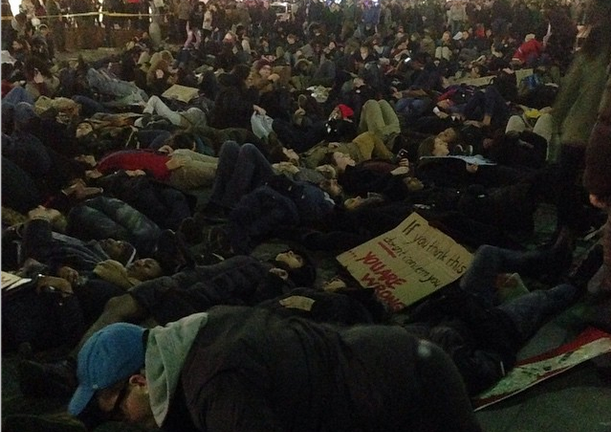 The protest comes after a larger event last night, which coincided with Boston Common Tree Lighting ceremony. The demonstrations are a response to a grand jury decision not to indict New York police officer Daniel Pantaleo on any charges for the death of Eric Garner, who died after Pantaleo put him in an apparent chokehold. In addition, last week saw the lack of indictment for Darren Wilson, a Ferguson police officer who shot and killed unarmed black 18-year-old Michael Brown.