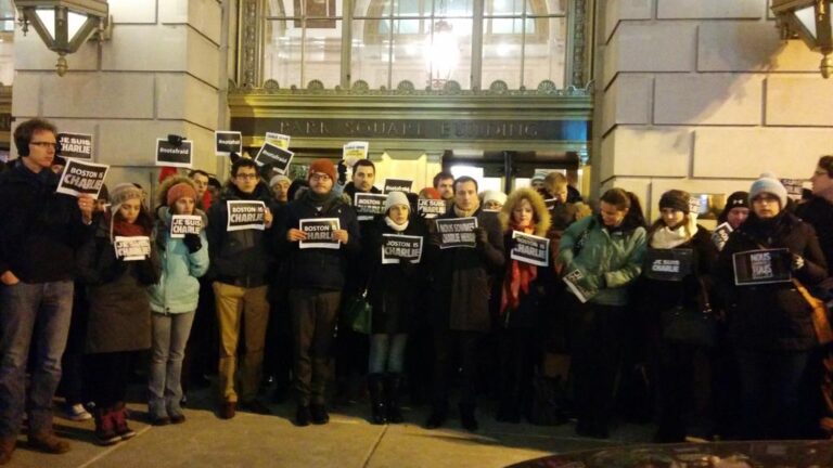 Bostonians Hold ‘Boston Is Charlie’ Signs After Paris Shootings