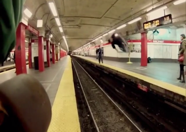 Watch This Insane Guy’s Leaping Flip Across MBTA Platforms