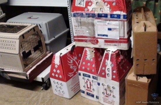 After the driver, Richard Diaz, 30, of Lawrence, and the owner of the vehicle, Yamil Maldonado, 28, of Lawrence, gave consent for the officers to search the vehicle, the troopers discovered four boxes in the back. Each box contained a live chicken that appeared to be groomed for fighting, according to the police statement. Troopers also discovered a garbage bag full of dead, shaved chickens hidden under the floorboards, paraphernalia related to cockfighting—including nail clippers, spurs, and liquid tape—and additional cash, totaling about $4,500.