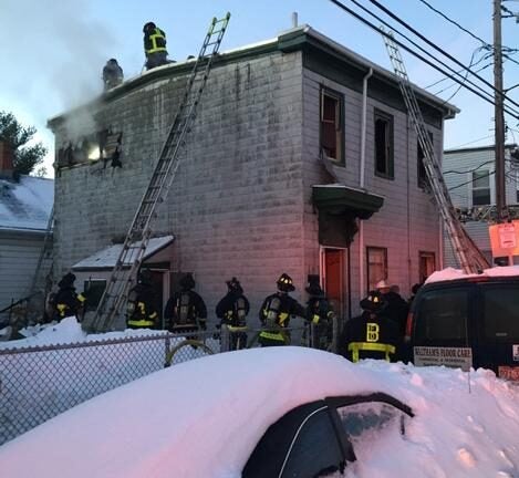 The snow left by Tuesday’s blizzard caused the streets to be more narrow than usual, slowing responders’ efforts, WHDH reports. The Fire Department also had to shovel out several hydrants still buried in snow along the street.