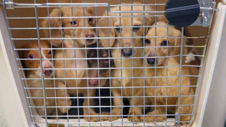 The MSPCA told Boston.com last month that the gaggle of dogs was doing well after being rescued from the Harrington Road. residence. An animal care supervisor said they were “surprisingly’’ happy. “Luckily these guys are doing really well behaviorally,’’ she said. “A lot of them are right at the front of the kennel [and] really social.’’
