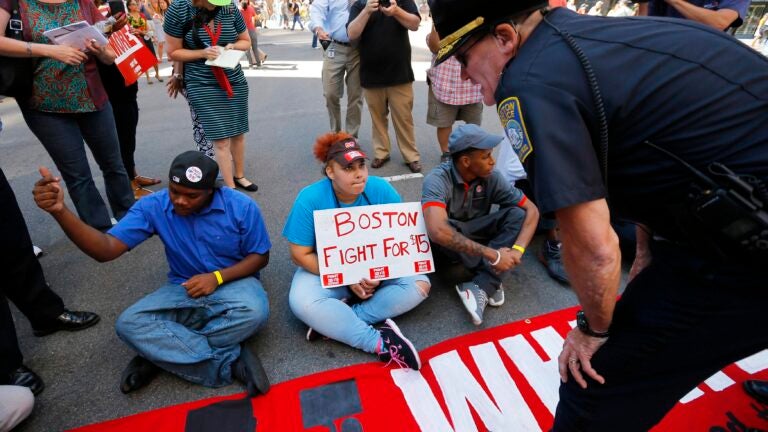 Thursday’s protest comes ahead of an international day of action planned for April 14 for low-wage workers across the world. In Boston, an expected thousand workers plan to march and lead a rally across the city at that time. The current protest, though, has more limited plans.