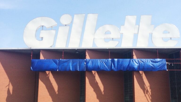 The sign is currently under wraps—blue tarp, specifically—but a security guard, whose secret identity we’re protecting, said it’s for an event Gillette will be hosting on Thursday. Could it be something as cool as the filming of another Avengers movie?