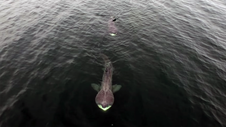 Gloucester resident and drone enthusiast Martin Del Vecchio captured this incredible footage of two basking sharks feeding off the city’s coastline Friday.