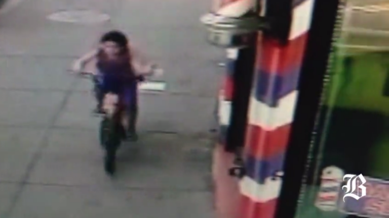 Surveillance video obtained by The Boston Globe shows the shooting of 7-year-old Divan Silva, who was hit Sunday while riding his bicycle past a barbershop in Dorchester.