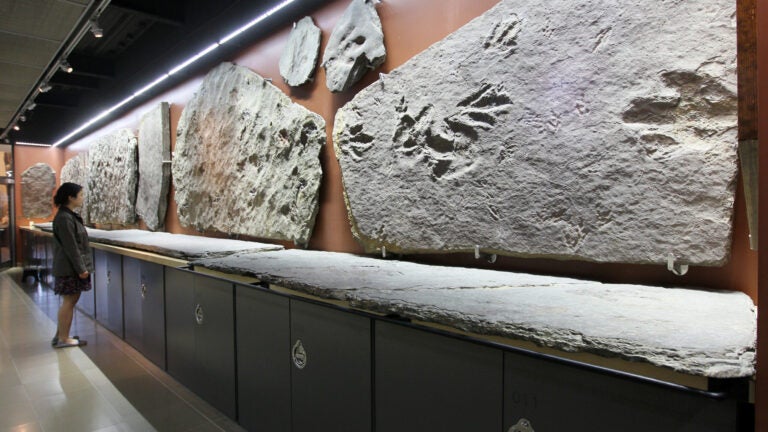 When dinosaurs roamed Western Mass.: “The Connecticut River Valley, it turns out, has a rich history of dinosaur discovery and research dating back more than a century. Its claim to fame isn’t big body skeletons, but rather prints from the Jurassic-era of 200 million to 145 million years ago. … Every year, [shop owner Kornell] Nash cuts footprints out of the quarry—which is about the size of three tennis courts—and sells them in the shop for between $50 and $1,000.’’ (Boston.com)