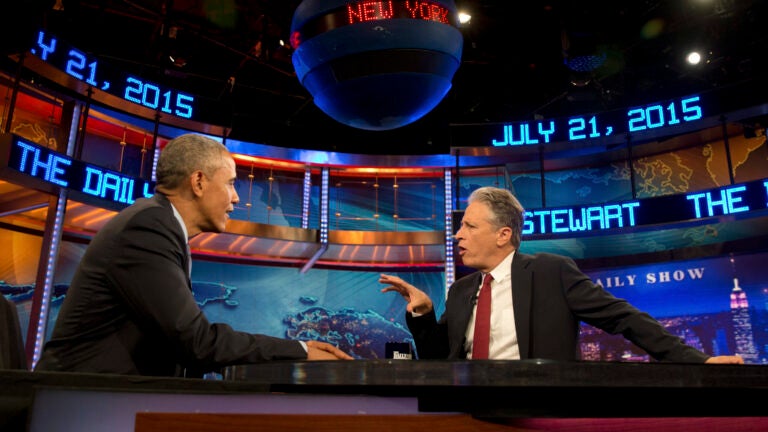 President Obama went on The Daily Show with Jon Stewart: He talked Stewart’s coming departure, the Iran deal, the media, and American youth. And like many fans, POTUS doesn’t want Stewart to leave. “I’m going to issue an executive order,’’ Obama said. “Jon Stewart cannot leave the show. It’s being challenged in the courts.’’ (Boston.com)