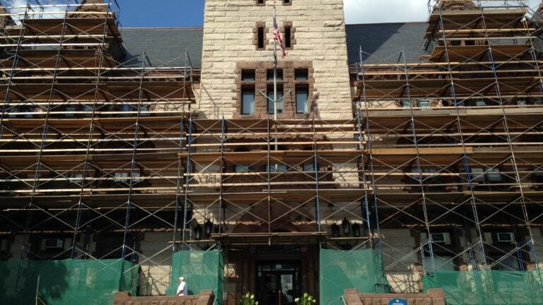 The scaffolding and work is expected to last through the fall, blocking views of what was a scenic building on Massachusetts Avenue.