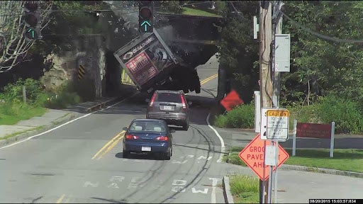 “We’ve done basically everything we could. There’s more than enough signs there,’’ a spokesman for the Westwood Police Department told Boston.com. A few years ago, Westwood police installed video cameras to monitor the crashes as well (see above).