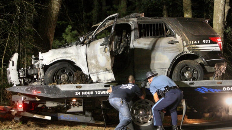 Massachusetts State Police said Wednesday afternoon the officer reported a white male in a dark colored pickup truck had fired shots at his cruiser, and he returned fire. However, according to Dwyer, the only ballistic evidence found at the scene was from the officer’s weapon.
