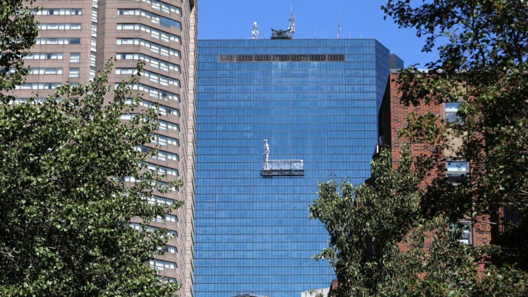 Who is this guy? “A larger-than-life figure of a man with his hands in his pockets suddenly materialized on the shiny glass windows of the former John Hancock building Wednesday, piquing the curiosity of onlookers in office buildings and on the streets below.’’ (The Boston Globe)