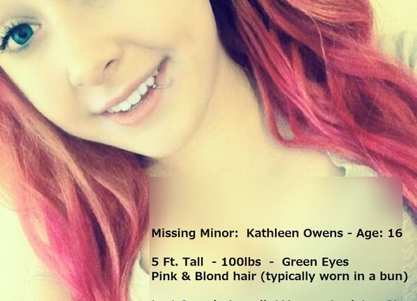 Kathleen Owens, a 16-year-old from Lowell, was last seen near Appleton Street, according to a post on the Lowell Police Department’s Facebook. Owens is about 5 feet tall and weighs around 100 pounds, police said. She has green eyes and hair dyed pink and blond that is often worn up in a bun.