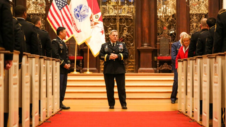 Even though he’s conducted oath-of-enlistment ceremonies before, Milley said this one was particularly memorable for him because of the number of people from other countries and the fact that the ceremony took place in the church, instead of at an army base or recruitment office.