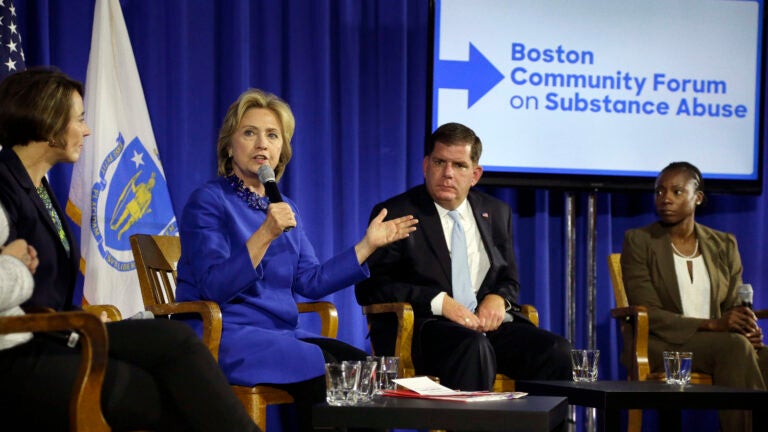 Clinton and Walsh last appeared together at a substance abuse forum in Dorchester, at which the former secretary of state praised Boston’s mayor for his leadership in addressing the epidemic.