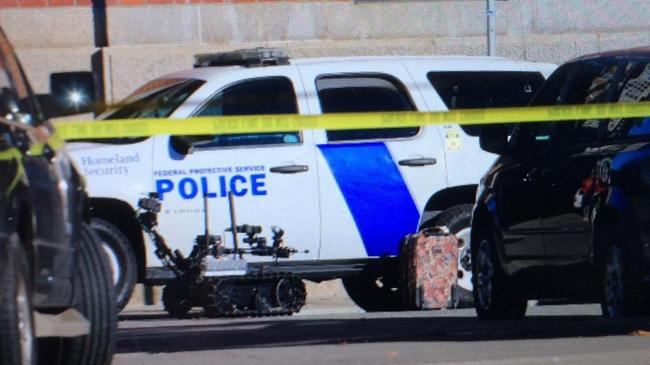 At 9:50 a.m. Friday, Boston Police responded to a report of a suspicious package near downtown. A floral suitcase was left next to the rear tire of the Homeland Security SUV parked near 408 Atlantic Avenue, Boston police said.