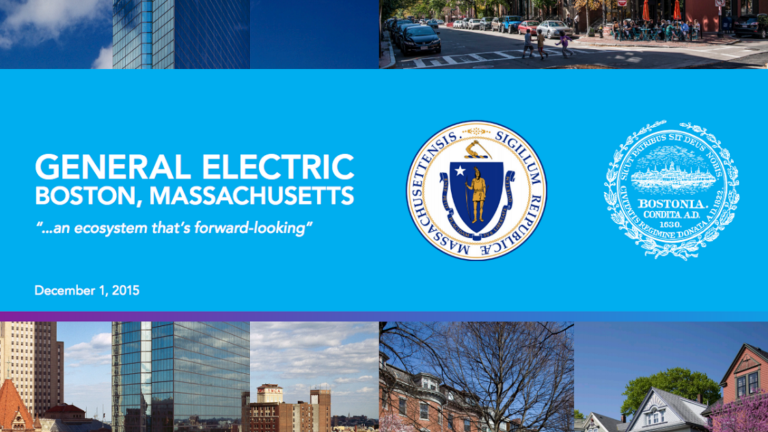 “The Commonwealth of Massachusetts and the City of Boston strongly believe that Boston, Massachusetts offers the thriving, healthy, and innovative ecosystem that General Electric is seeking in order to grow and succeed.’’