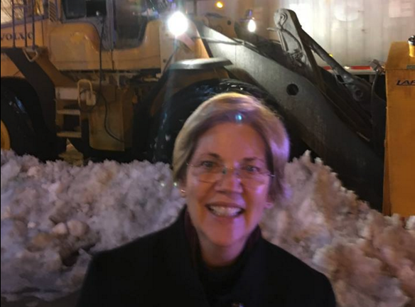 On Tuesday, U.S. Sen. Elizabeth Warren spotted a snow blower with Massachusetts plates in the nation’s capital, so she offered her thanks in a Facebook post.