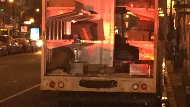 Hazmat crews used a neutralizing agent in the back of the truck, according to the department. The bottle was expected to be placed in a container and packaged for a cleanup vendor to remove.