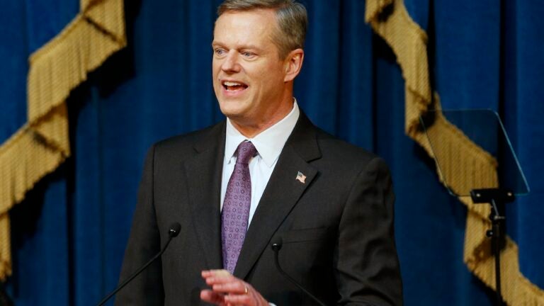 Gov. Charlie Baker also urged drivers to stay off the roads during Monday’s snowstorm.