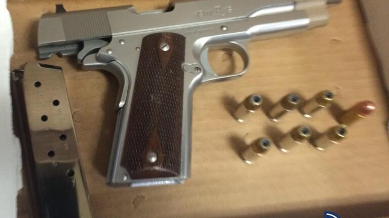 A search warrant of the location found a loaded .45 caliber handgun, a large amount of cash, and the cartons of cigarettes that had been taken from the store.