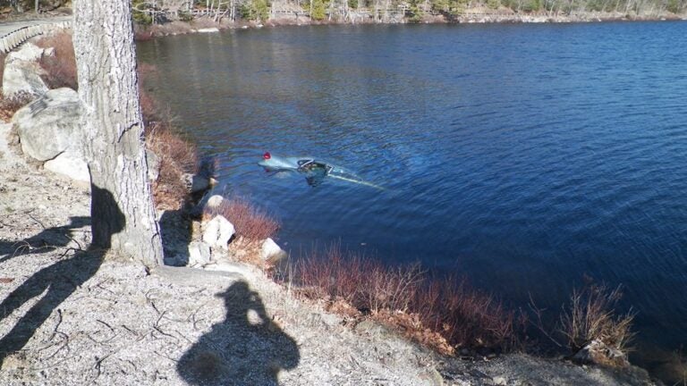 Parker’s car launched into Fox Pond Saturday after she failed to navigate a sharp turn, according to police. Leonard Wallace, who was fishing at the edge of the pond, jumped into the 48-degree water and pulled Parker and her two children — a 3-year-old and 2-month-old — back to the shore.