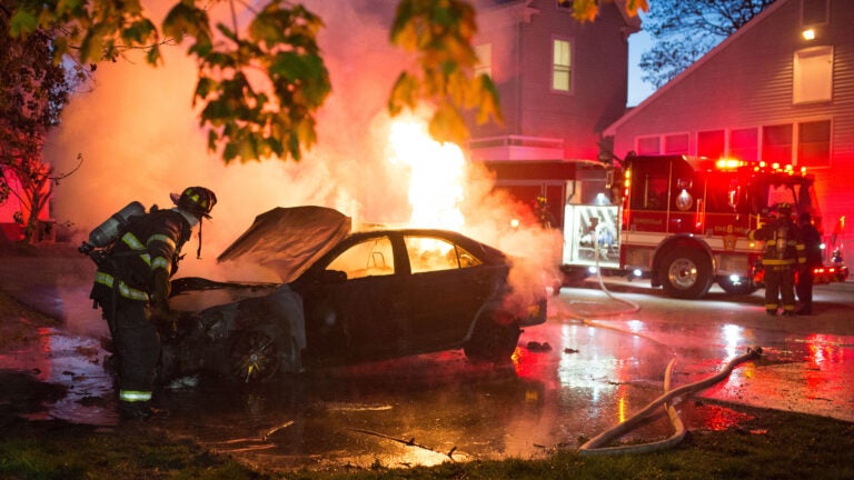 The car fire, located at 124 Professors Row, was extinguished. Jeka said that the choice of that car “appears to be random.” A bevy of local, state, and federal police were on scene to investigate the bomb threats, the city of Somerville said in a statement.