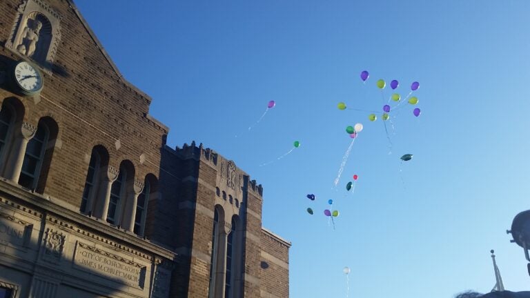 A cloud of purple, green, and white Teenage Mutant Ninja Turtle balloons floated into the sky in South Boston Tuesday night as family and friends mourned the loss of Kyzr Willis, the 7-year-old who drowned last week while attending a city-run day camp.