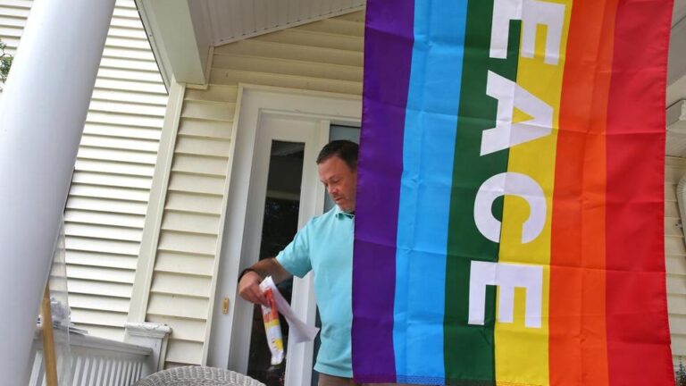 Cari and Lauri Ryding, a gay couple, had hung a rainbow flag on their porch in the wake of the Orlando massacre. In response to the theft, neighbors ordered rainbow flags for the whole street and asked their children to deliver them.