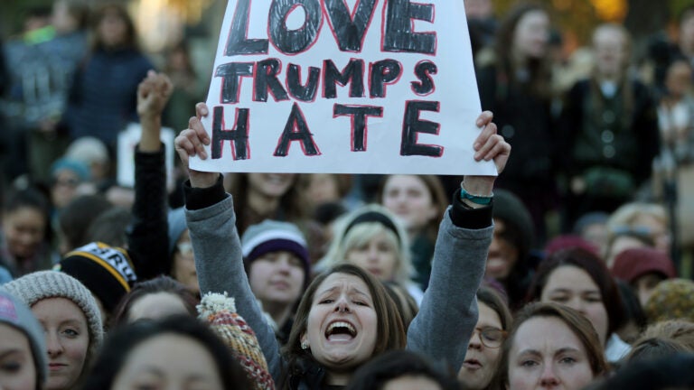 More than a thousand people gathered Friday afternoon on Boston Common for what was billed as a “Love Rally” in the wake of the election of Donald Trump.