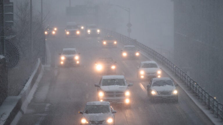 BOSTON (AP) — Gov. Charlie Baker is urging people to stay off Massachusetts roads as the biggest snowstorm of the winter moves across the state during the morning commute.