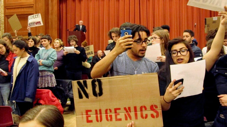 Hundreds of students chanted as Murray began to speak Thursday, forcing the college to move the lecture to an undisclosed location. Murray’s talk was live-streamed to the original venue, but protesters drowned it out. The topic, he said, was the divergence of the country’s culture into a new upper class separated from mainstream America.