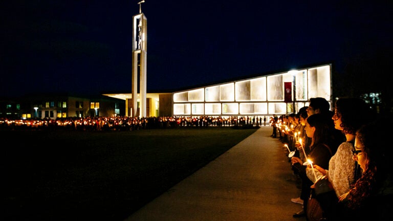 Several thousand people gathered on the Sacred Heart campus Sunday night to remember Nelson, a member of the Kappa Delta sorority, and share their grief. A Mass dedicated to her was followed by an impromptu candlelight vigil.