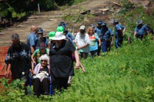 Other activists identified were Eric Burcroff, 57, of Plainfield, Dennis Carr, 59, of Cummington, Ellen Graves, 76, of West Springfield, Priscilla Lynch, 65, of Conway, Constance Harvard, 69, of Northampton, Elizabeth Ramirez, 47, of Holyoke, Laura Simon, 63, of Wilder, Vt..