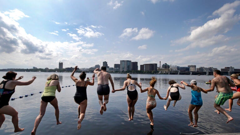BOSTON (AP) — They dove in, splashed around and blissfully floated in the murky river water.