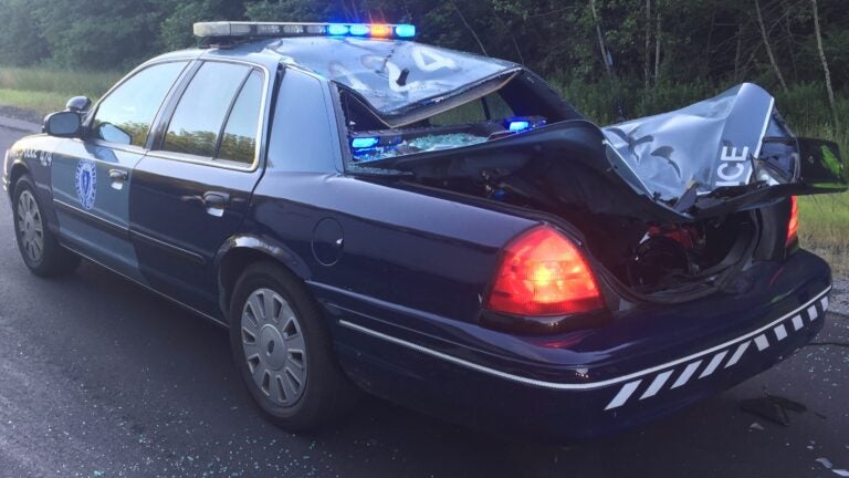 According to police, the state trooper in the vehicle was not injured. The tractor-trailer did not stop at the scene.