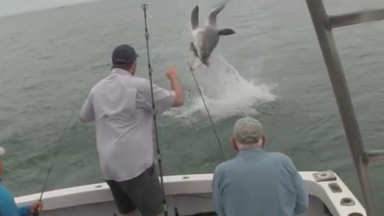Watch: Great white shark leaps airborne to steal catch off Cape Cod fisherman’s line